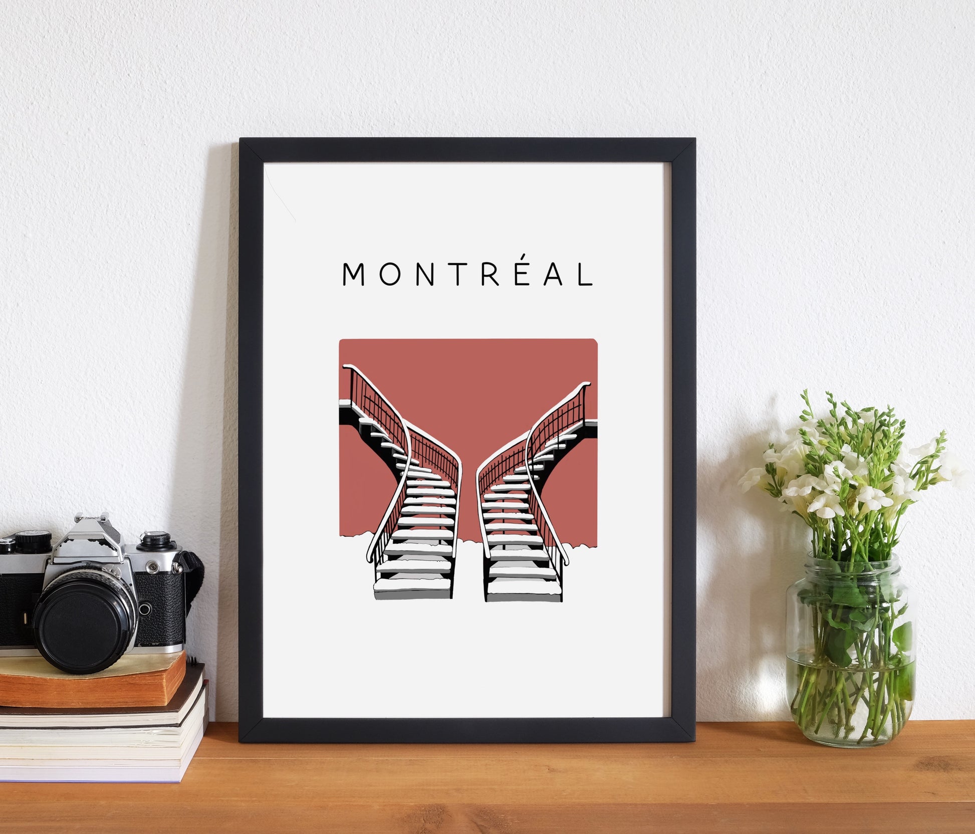 Impression d'une illustration des Escaliers de Montréal pour décoration murale